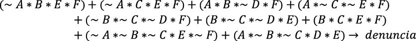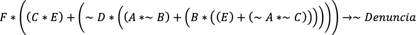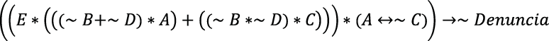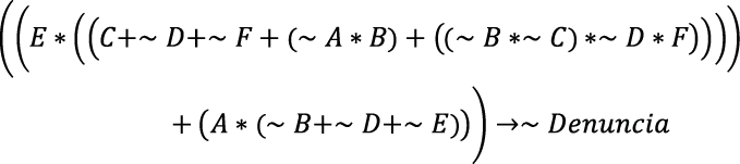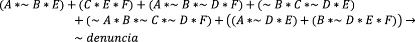El análisis de suficiencia inicia con la elaboración de la tabla de verdad (Tabla 1). En ella se analizan tanto denuncia como no denuncia.