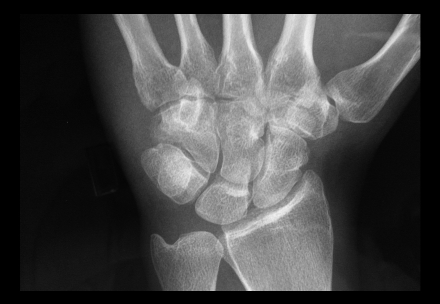 Paciente varón joven con dolor y tumefacción en el dorso de la mano de un año de evolución, refractario al tratamiento médico. Las pruebas complementarias mostraron una tumoración lítica en el hueso ganchoso con características no agresivas. Fue tratado mediante curetaje y relleno con injerto autólogo de cresta ilíaca. El estudio de anatomía patológica diagnosticó que se trataba de un osteoblastoma.