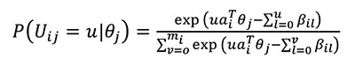 La probabilidad de seleccionar la categoría ordenada u con un vector de rasgo latente θ de la persona j viene dada por: