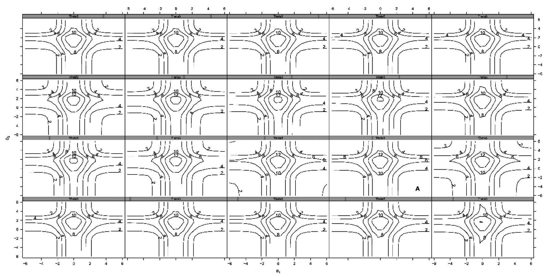 Con respecto a la FIT, en la figura 1 se observa su contorno y, concretamente, en la figura con la etiqueta A se aprecia en qué niveles del vector θ se obtiene una mayor precisión en el test. Dichos valores corresponden a θEN = 0.00, θEP = 1.90 y θU = -1.20 con un valor máximo en FIT de 13.989. Por lo tanto, el test es más informativo para niveles medios de emociones negativas, niveles altos de emociones positivas y niveles bajos en utilidad.