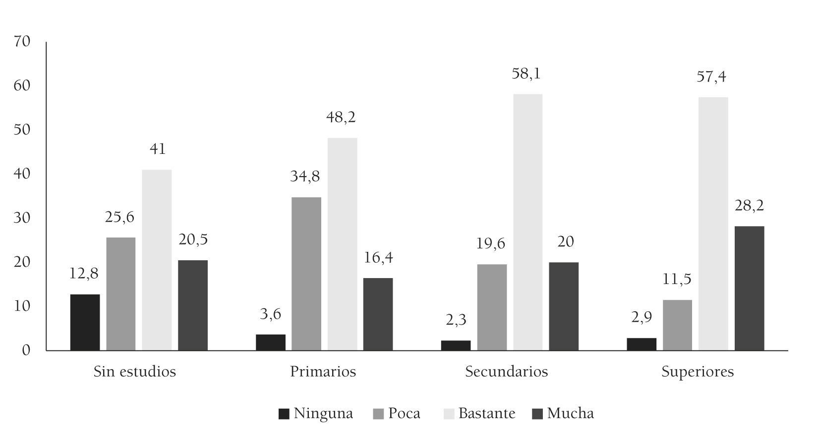 Figura 2. Importancia familiar concedida al ocio y nivel de estudios del padre (%)