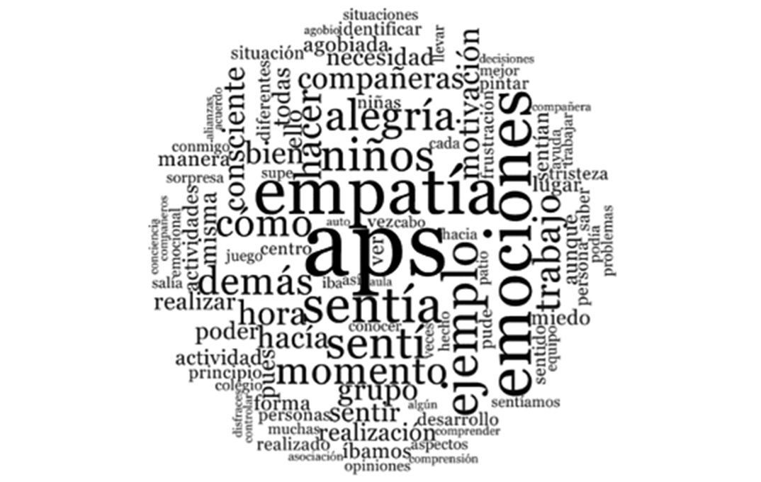 Estos resultados vienen avalados por las respuestas abiertas, que evidencian la puesta en práctica de aspectos de cada una de estas por parte del alumnado (tabla 4). Analizando la frecuencia de las palabras empleadas en los comentarios del alumnado (figura 3), se aprecia que las más repetidas son: empatía, emociones, sentía, niños y alegría.