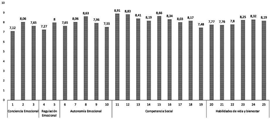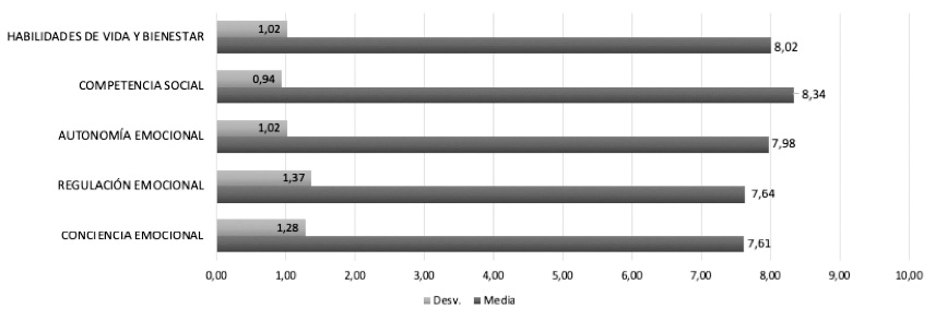 Gráfico 1. Media y desviación típica por cada competencia emocional
