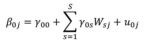 γ0s: efecto lineal de la covariable Ws en el rendimiento medio de los centros.