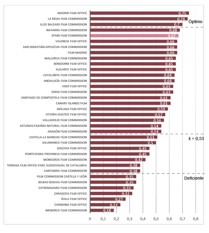 Promover el desarrollo de los sectores audiovisuales autonómicos y el turismo de sus territorios de forma individual a través de las distintas film commissions puede generar un beneficio interno o externo para la región en sí, pero de forma concentrada y aislada. De cara al contexto internacional, lo que se produce es una ambigüedad y disparidad de mensajes frente al público externo, que puede llegar a tener cierto grado de confusión al recibir mensajes independientes, o incluso opuestos, de distintas instituciones de un mismo país centrándose en lo local en detrimento de una globalidad que beneficie al conjunto del sector audiovisual español y a la propia imagen y marca de España. En palabras de Martínez (2015a):