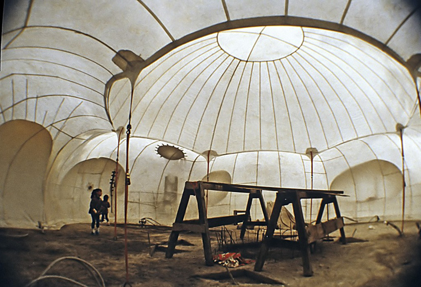 Fig. 6 / Imagen de la cimbra hinchable de la casa flor, en fase de construcción