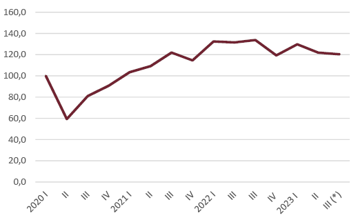 Fig. 17 / Compraventas de viviendas registradas. Datos trimestrales (100=2020 I), 2020-2023