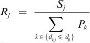 El fundamento del cálculo del índice de accesibilidad está precisamente en la secuencia de pasos. En el primero, para cada unidad médica j se suma la población de todas las localizaciones k (centroides de manzanas, colonias, distritos, municipios), que están dentro de un umbral de desplazamiento (tiempo de viaje) d0 a partir de j; este umbral representa el área de cobertura (catchment area) de j. De esta forma se obtiene Rj que es el servicio potencial (médicos/población) dentro del área de cobertura.