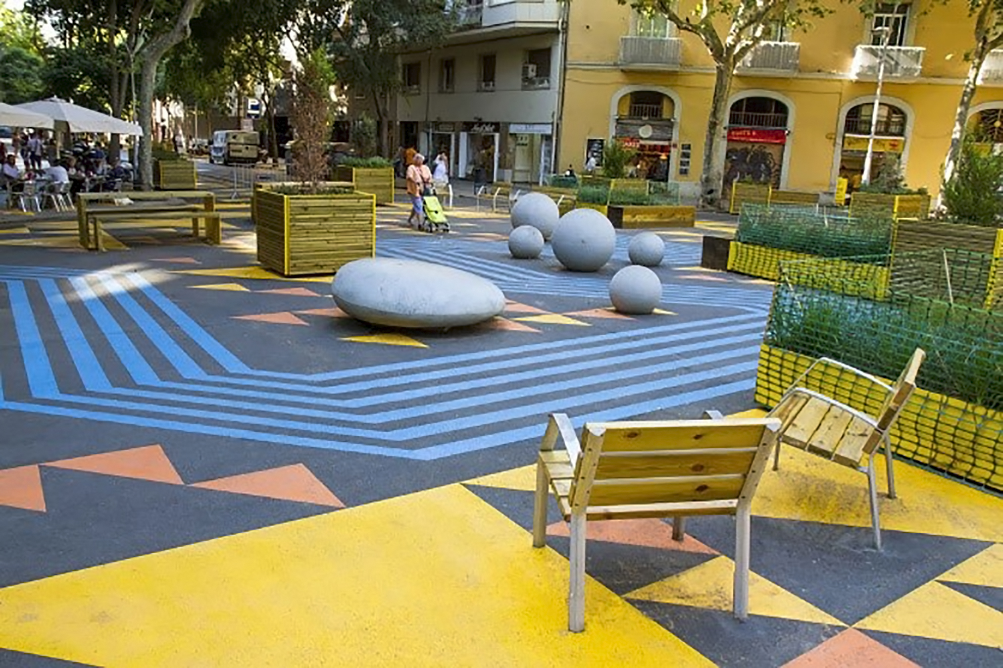 La primera de estas Supermanzanas, enmarcada dentro de una visión global de transformación de los usos del suelo y la movilidad (Zografos et al., 2020) fue implementada en septiembre de 2016 en el barrio del Poblenou de Barcelona. Se trata de un barrio de marcada tradición industrial desde mediados del siglo XIX (Clos, 2004), que a partir del declive de la industria y la emergencia de nuevos sectores, se ha visto inmerso en un proceso de transformación urbana hasta la creación del 22@, una zona pensada como un hub tecnológico (Simón, 2022). Siguiendo este proceso de revitalización y teniendo en cuenta que se trata de una zona con una baja densidad de población (217,4 hab./ha) (Departament d’Estadística i Difusió de Dades, 2017), se consideró adecuada la implementación de la prueba piloto del modelo Supermanzanas, como una oportunidad de dinamización de la zona (Agència d’Ecologia Urbana de Barcelona, 2015). Como prueba piloto y teniendo en cuenta que podía ser desmantelada posteriormente, se implementó a través de urbanismo táctico, es decir, utilizando pintura y mobiliario urbano para crear los espacios de manera rápida y económica, además de ser un espacio de experimentación urbana (Magrinyà, 2021).