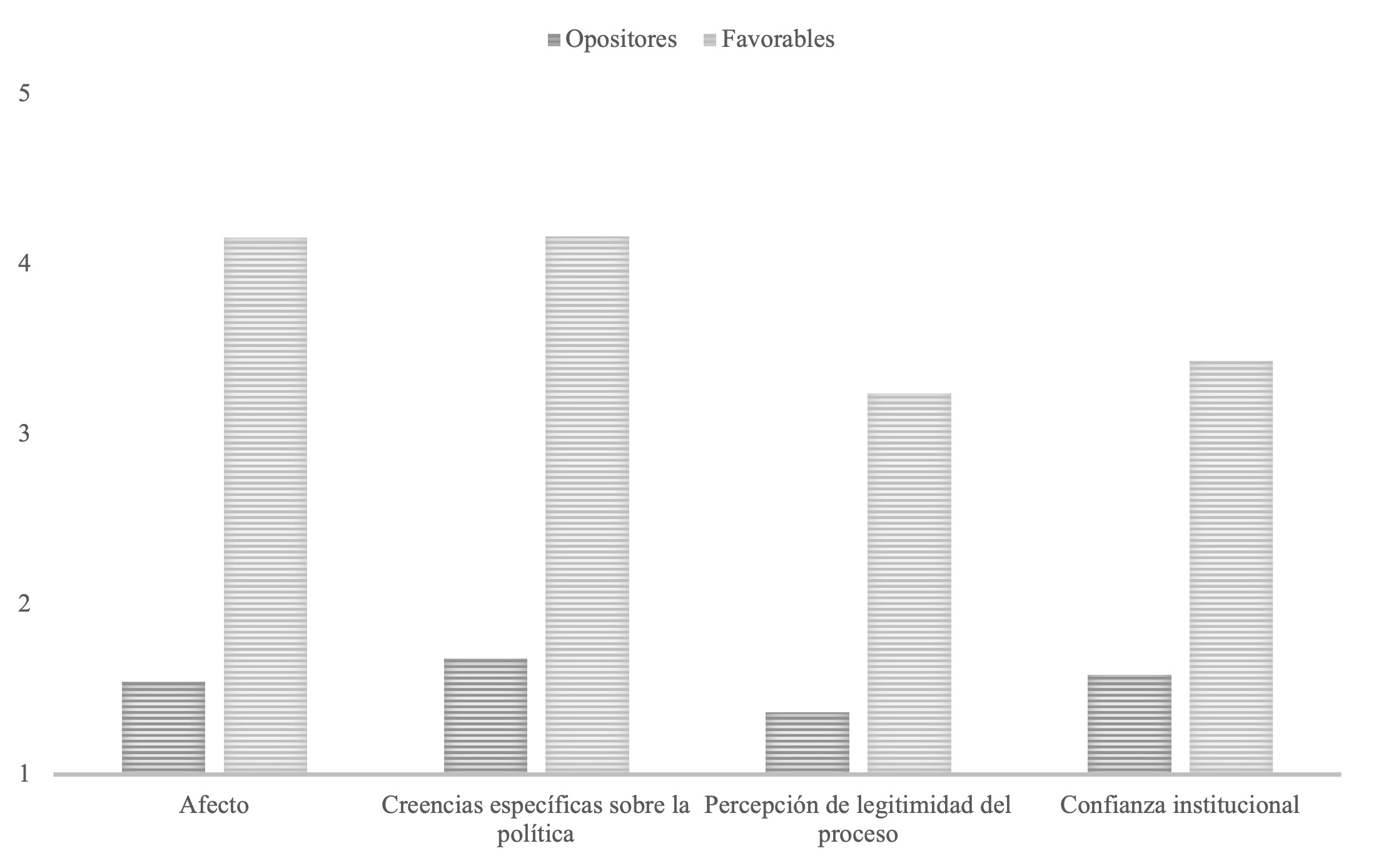 Los partidarios reportan niveles significativamente más altos de afecto positivo, perciben las supermanzanas como más eficaces para abordar la contaminación atmosférica, como más justas, más beneficiosas para el medio ambiente local, la calidad de vida de los residentes y la vida social de los barrios, tienen niveles más altos de confianza en el gobierno local y perciben la aplicación del proyecto de las supermanzanas como más legítima.