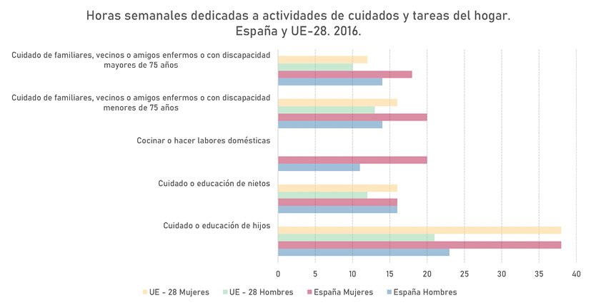 (Eurofound, 2016; Instituto de la Mujer, 2007) (Fig. 1), que a su vez conlleva, en muchos casos, una “doble carga de trabajo” al combinarse con empleos remunerados (Sánchez de Madariaga, 2009).