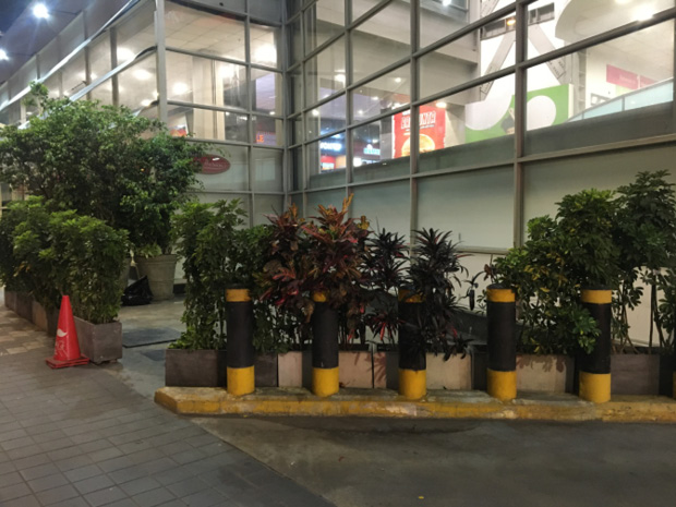 Tanto los ciclistas como los motociclistas desarrollan estancias de espera en el parque Abtao y en un retiro de la calle Las Begonias, respectivamente. En el caso de los motorizados, el retiro tiene un área aproximada de veinte metros cuadrados y corresponde a las características de un pedazo como forma de apropiación y uso del espacio restringido a ciertos actores habituales compartiendo los mismos códigos en un punto de referencia (Magnani, 2002). Este lugar no es de paso cotidiano, sino que está marcado por estancias más prolongadas y se encuentra separado tanto visual (macetas y separadores viales que tapan el lugar) como espacialmente (está semicerrado y solo tiene un ingreso). El retiro no cuenta con mobiliario alguno, suponiendo un primer nivel de espesura en la movilidad cotidiana de los TMD (Fig. 4). En ambos casos, la ubicación de los repartidores no responde a un gusto específico, sino a los recursos disponibles.