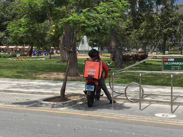 “Yo estoy en bicicleta, pero los que trabajan en moto ganan más dinero y hacen más pedidos. No solo yo, todos queremos trabajar en moto, pero no se puede, pues. La moto es más cara para comprar y para mantener. Lo otro es que no les dejan trabajar. El serenazgo (trabajador de fiscalización) a nosotros nos dice que nos movamos, pero a ellos los bota. Igual en el futuro me compraré mi moto porque así se gana más.”” (Repartidor ciclista).