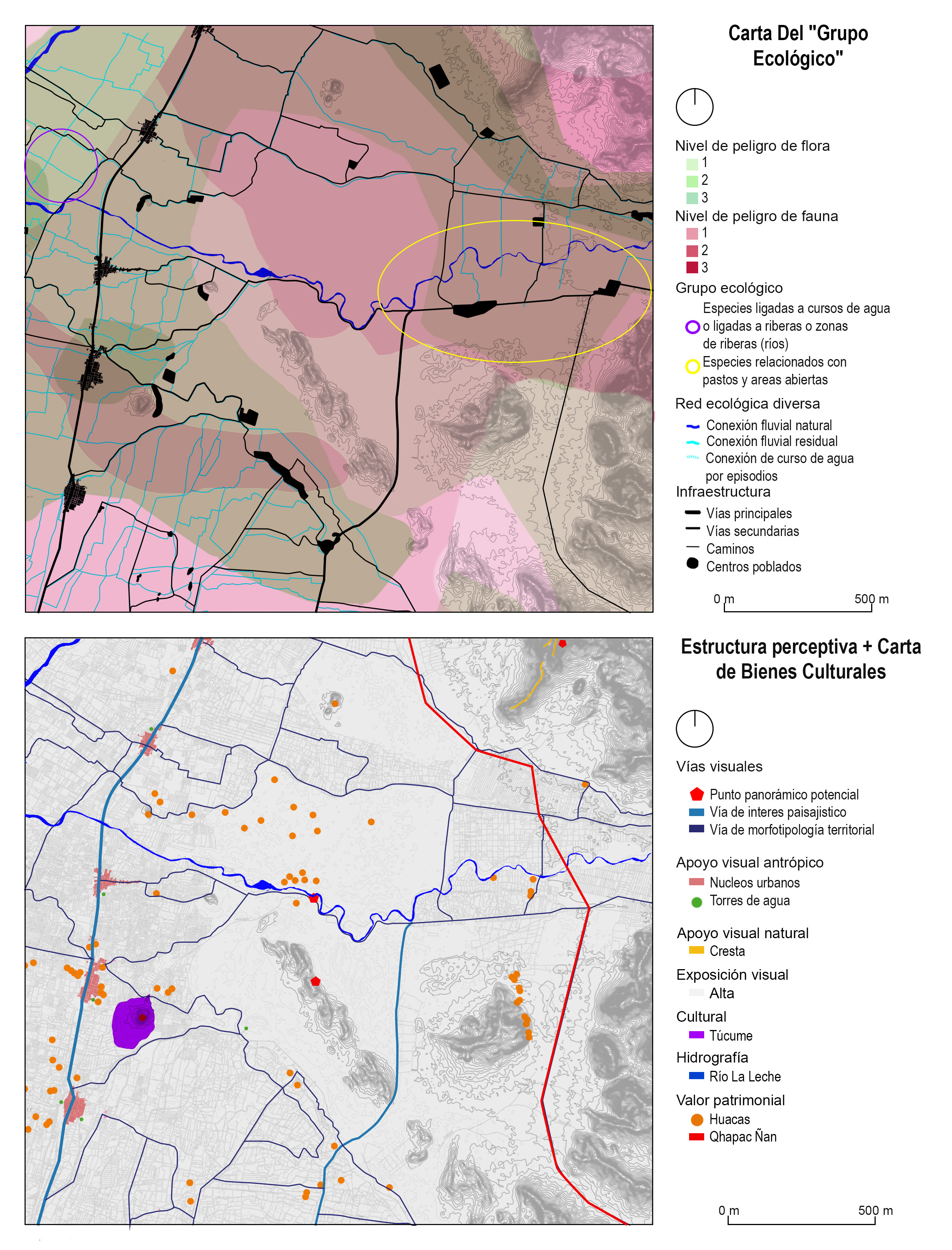 FIG. 8. Mapa de Carta Del “Grupo Ecológico”, y Estructura perceptiva y Mapa de Carta de Bienes Culturales