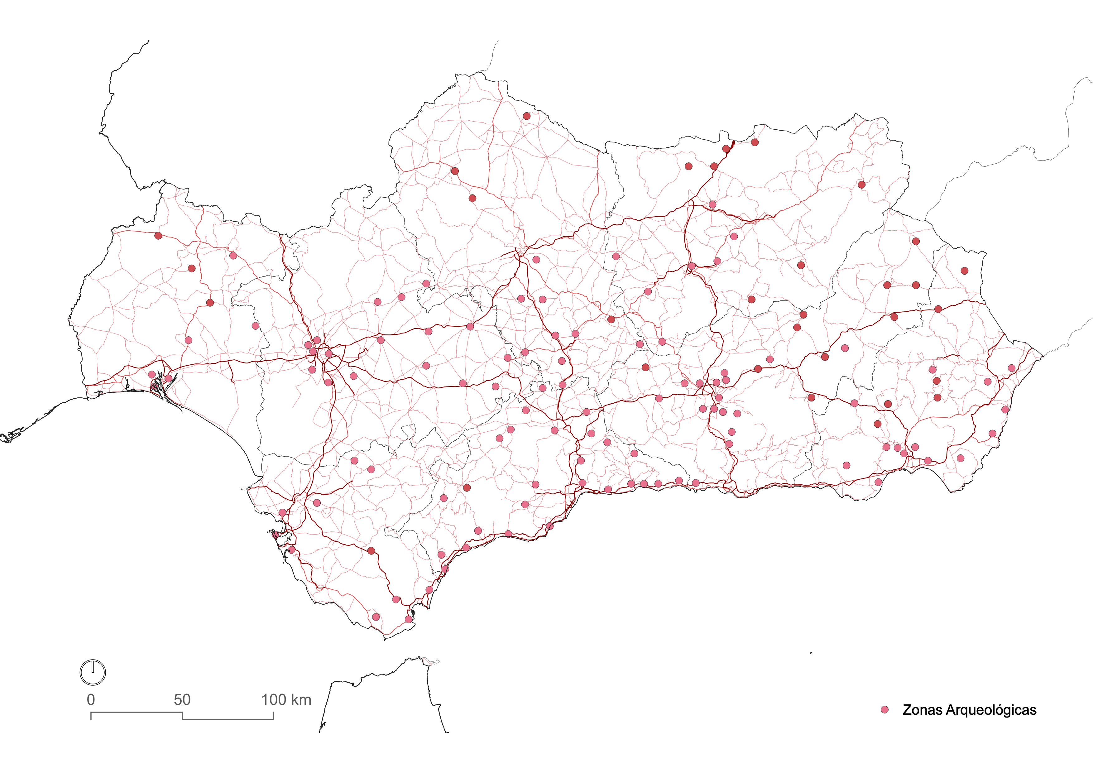 Todas las zonas arqueológicas señaladas están en áreas rurales en riesgo de despoblación, definidas en la investigación como aquellas que se encuentran por debajo de 25 hab/km2. Dentro de esta categoría se encuentran aquellas en riesgo extremo (<8 hab/km2), en riesgo intenso (entre 8 y 12,5 hab/km2) o en riesgo (entre 12,5 y 25 hab/km2). En todas estas áreas, el patrimonio arqueológico a escala territorial permite reconocer los modelos territoriales históricos y puede generar identidad a través de la restauración de las dinámicas de formación de paisaje. Esta escala territorial permitiría crear sinergias entre comunidades en un entorno físico común y podría constituir una nueva variable de análisis patrimonial en la actual redacción del nuevo Plan de Ordenación del Territorio de Andalucía.