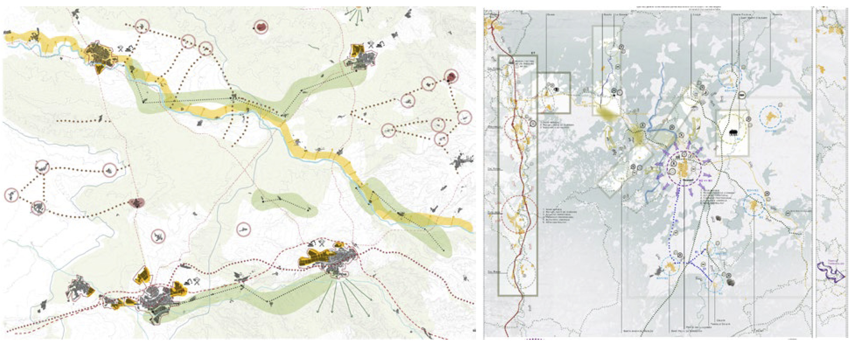 Con respecto a la transversalidad escalar, parece claro que las tres escalas de enfoque están bien interrelacionadas para garantizar que las estrategias implementadas a cualquier escala tengan un impacto directo y positivo en las otras dos escalas. Por lo tanto, cualquier intervención sobre el entorno urbano debe orientarse, además de mejorar las condiciones de vida de las comunidades, a nutrir las estrategias propuestas sobre unidades geográficas, así como las propuestas a la escala más territorial (Fig. 16a). Del mismo modo, los proyectos territoriales, que en la mayoría de los casos son competencia de las administraciones públicas de nivel superior, deben ser sensibles a las lecturas de las unidades geográficas y a los intereses locales de las zonas rurales (Fig. 16b).