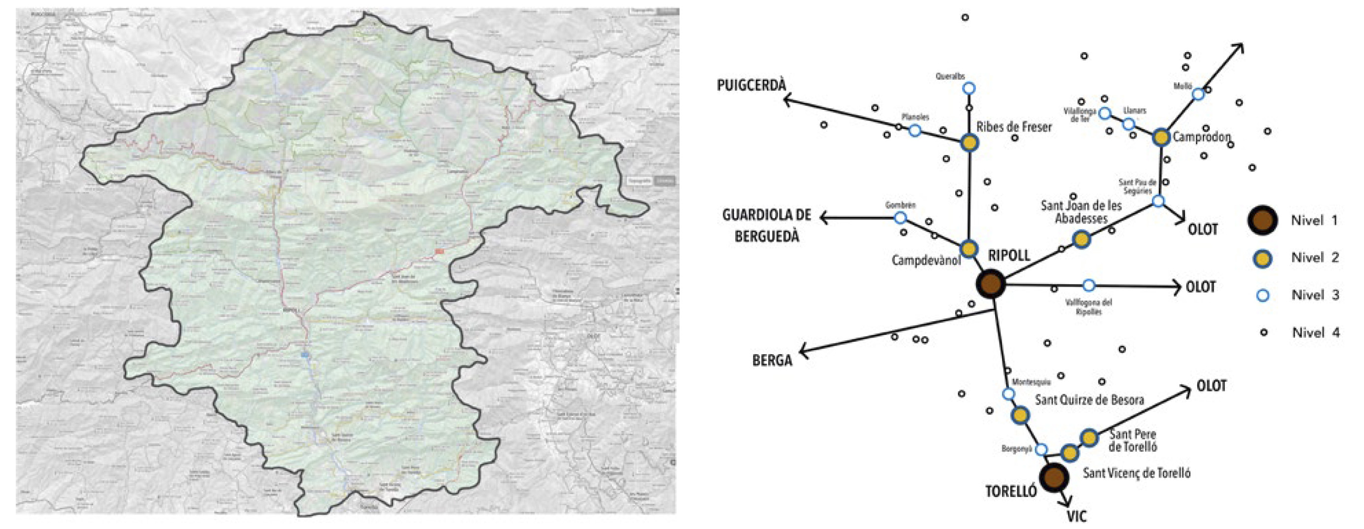 FIG. 8. Propuesta de jerarquía de núcleos en el Ripollés