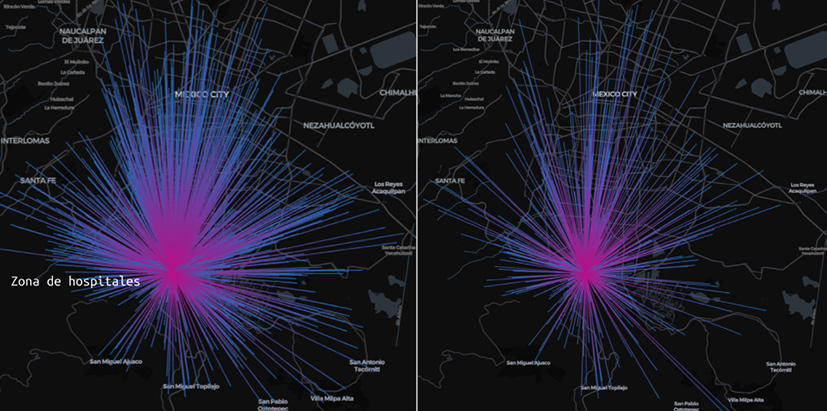 Fig. 6 / Dinámicas de Movilidad Urbana en la Ciudad de México (CDMX): análisis pre-pandemia vs cuarentena (zona de hospitales)