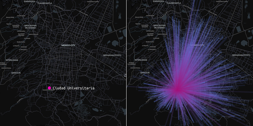 Fig. 7 / Ciudad Universitaria, ejemplo de un núcleo de atracción altamente conectado, Ciudad de México (CDMX)