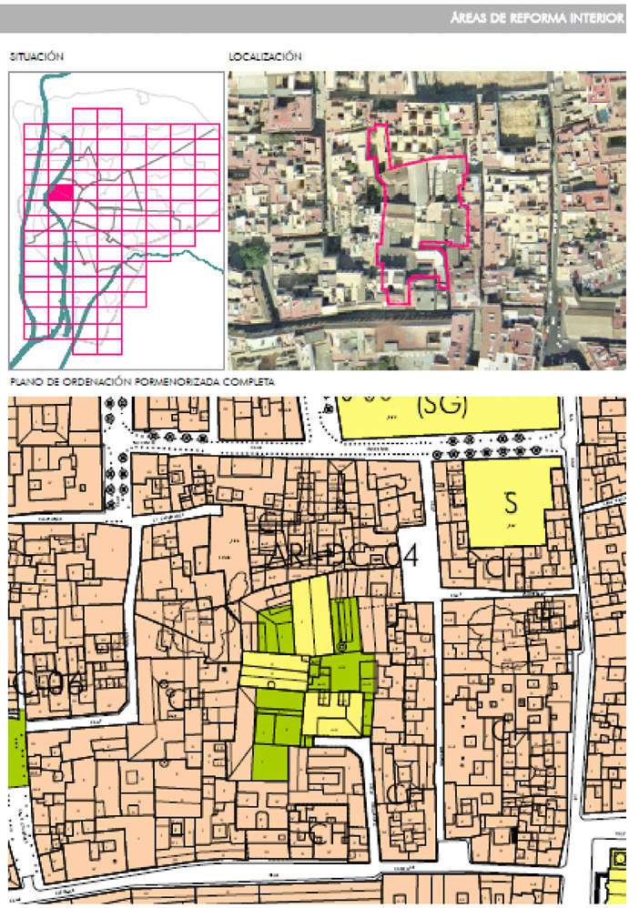 Desde un punto de vista legal, la antigua Fábrica de Sombreros es una única unidad de actuación pese a su crecimiento por etapas. El Plan General de Ordenación Urbana de 2006 (González Fustegueras, 2007) la incluye en un Área de Reforma Interior (en concreto el ARI DC-04) con el objeto de proteger las naves centrales, dos de las cuales son las arrendadas para el proyecto T11, por su alto valor patrimonial. Se debiera haber desarrollado en este periodo un Estudio de Detalle donde se asignará de manera más concreta los usos permitidos pero ni la administración pública ni la propiedad han dado pasos para su realización. Sí queda clara en este ARI la protección al uso de estas naves, preferentemente sociocultural, y la planificación de un paso público que conecte calle Heliotropo, que enlaza con calle Castellar y la plaza de San Marcos, con Clavellinas, que conecta con la calle San Blas (Fig. 1). Con 3867 metros cuadrados de superficie total aprovechable supone una de las piezas más útiles a la hora de plantear una reconstrucción del hábitat de este área del casco norte pues tiene espacio suficiente para consolidar la acción de los artesanos y artesanas que desde allí operamos y la creación de espacios libres para el vecindario.