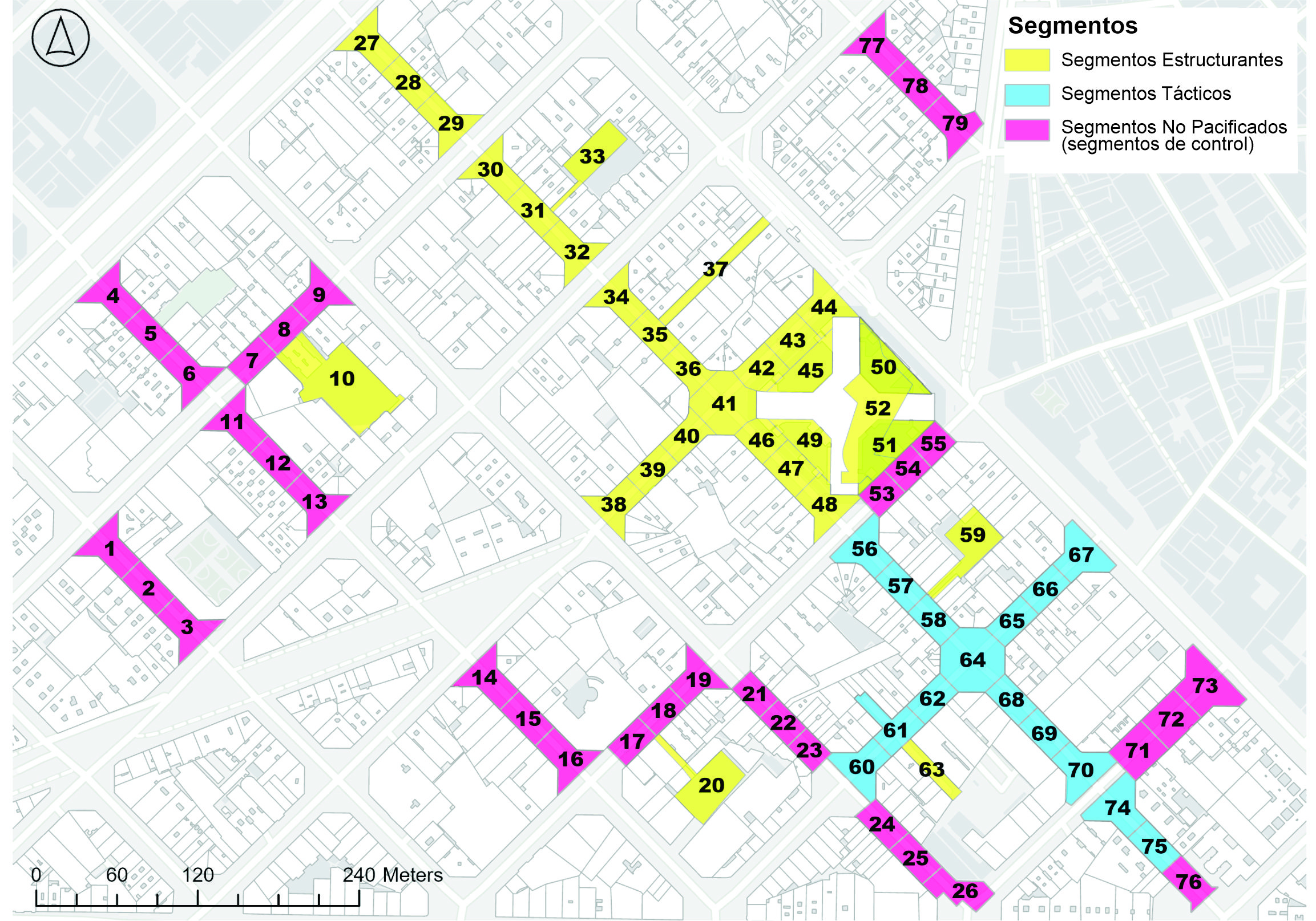 El caso Barcelonés es peculiar con respecto a la gestión de intervenciones tácticas. En contraste con otros lugares donde estas iniciativas suelen afianzarse y mantenerse como contestaciones a movimientos vecinales, en Barcelona, el Ayuntamiento ha liderado muchas de estas acciones, es decir en procesos de arriba hacia abajo. Si bien los proyectos han sido concertados por los vecinos, su naturaleza ciudadana ha sido objeto de politización, destacando el papel crucial de la lucha por el reconocimiento político en su éxito o fracaso. En este sentido, este artículo busca contribuir al debate sobre el impacto de dos categorías de pacificación (estructurante y táctica) sobre los patrones de uso del espacio público. Para ello se estudia la Supermanzana de Sant Antoni en Barcelona que aúna ambos tipos de pacificación, además de tramos no pacificados que fungen el rol de tramos de control. La coexistencia de estas tres categorías de tramo resulta significativamente conveniente pues permite mantener, hasta cierto punto, la cláusula ceteris paribus.