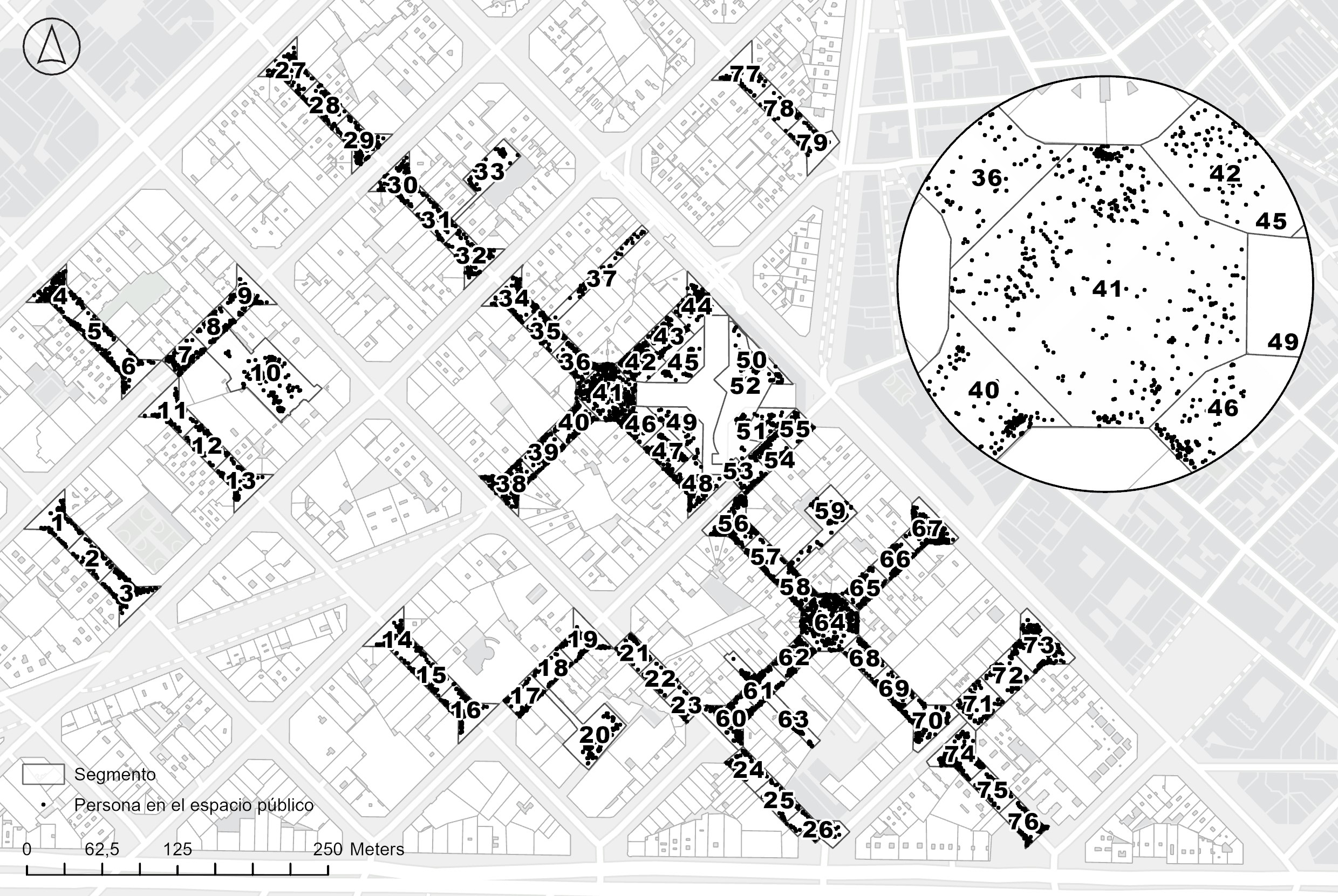 FIG. 4. Mapa de las personas observadas en el espacio público de la Supermanzana de Sant Antoni