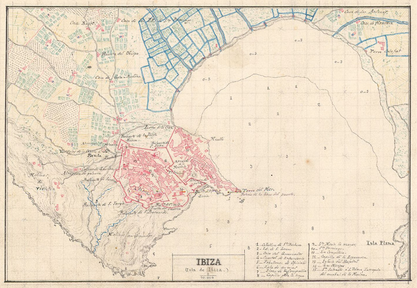 Fig. 1 / Plano de Ibiza de F. de Coello (c. 1850), escala 1:10.000