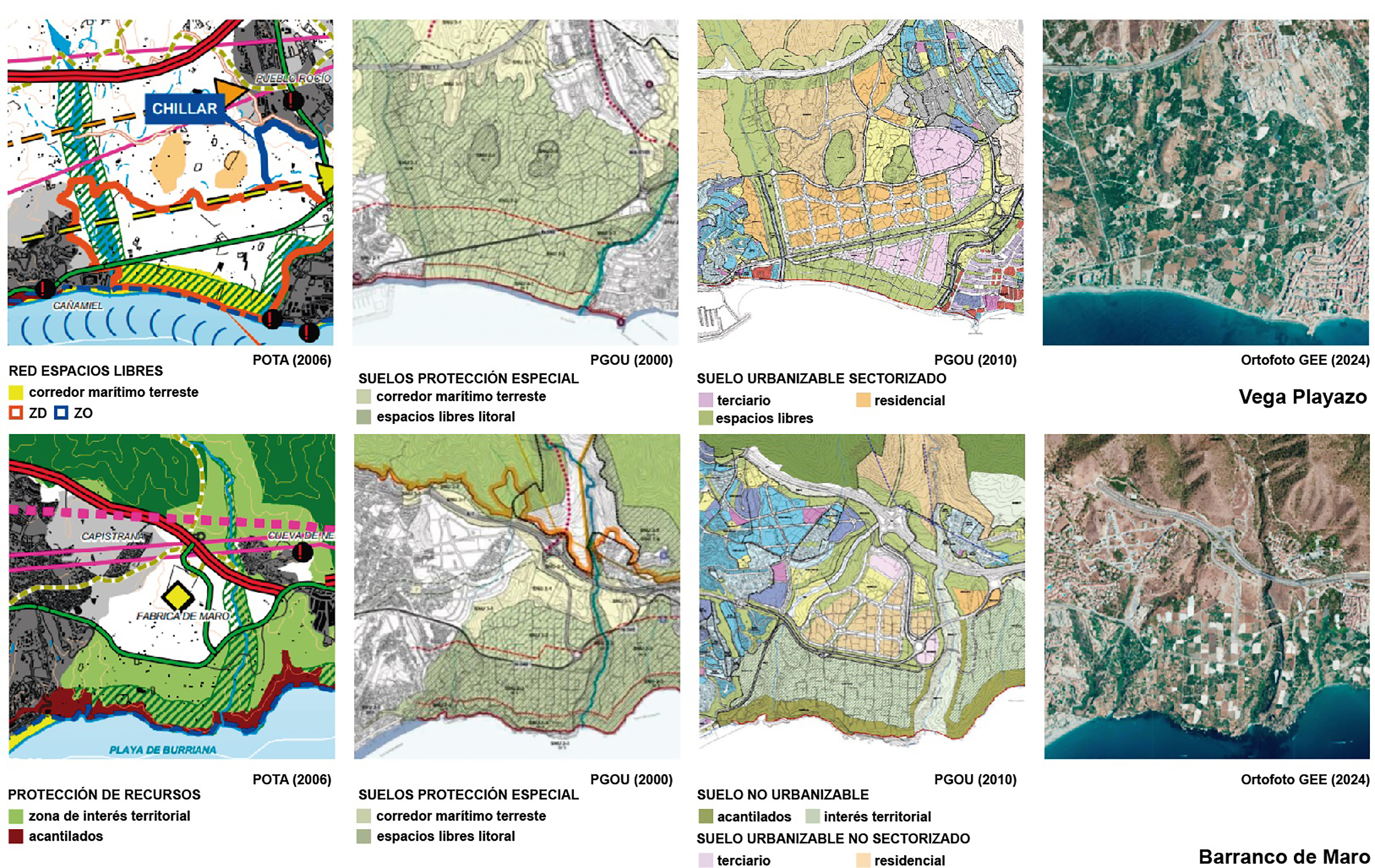 Fuente: Elaboración propia a partir del POTA-Axarquía, PGOU 2000, PGOU 2010 y ortofotos obtenidas de GEE