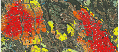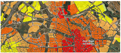 Fig. 2 / Mapa Urbanístico de Catalunya y Índice de Accesibilidad al Transporte Público (IATP). (Ejemplo del municipio de Terrassa, Vallès Occidental)