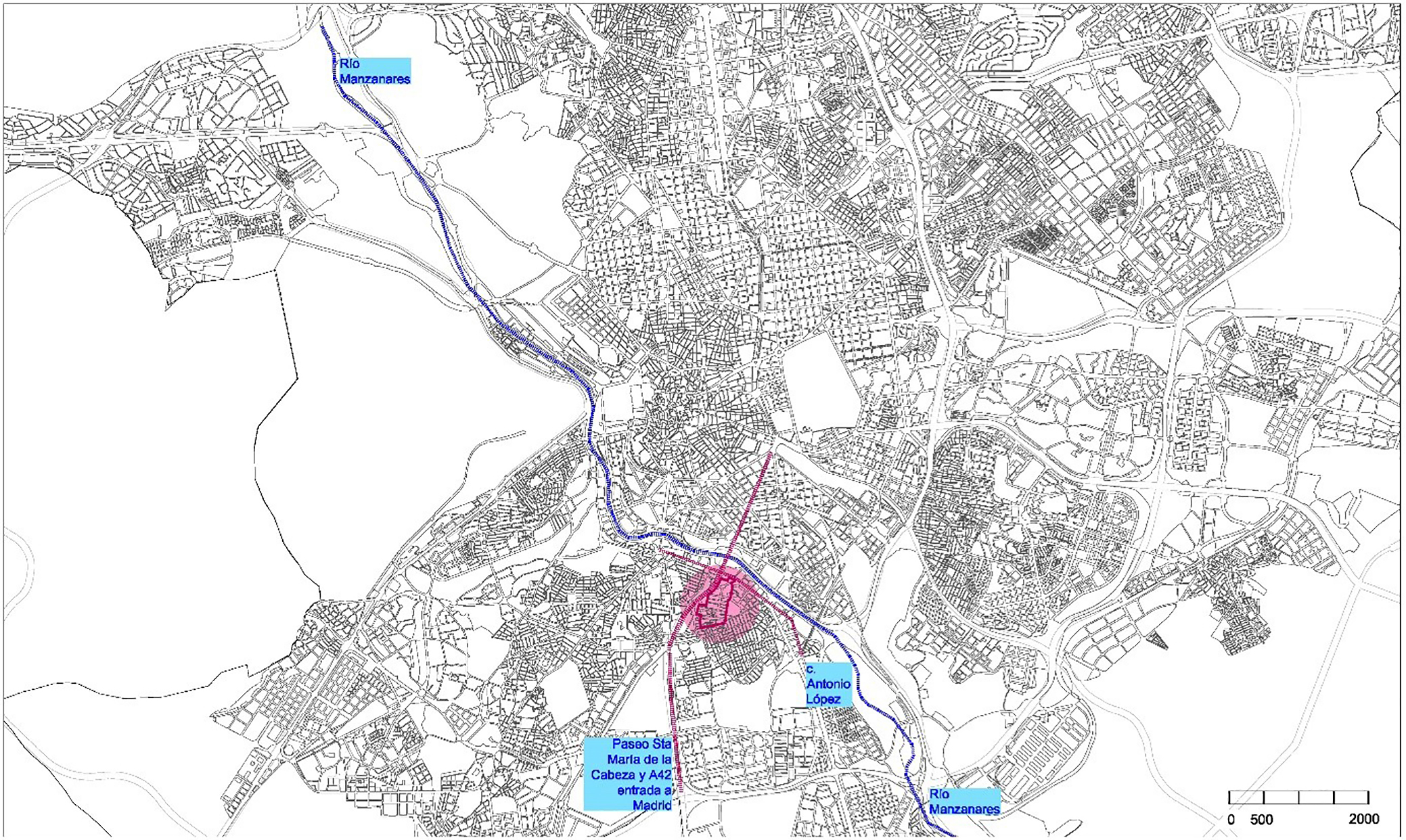 En este contexto aparece la colonia Moscardó (Fig. 1). Situada al norte del distrito de Usera, aunque inicialmente pertenecía a Carabanchel, la colonia ocupa una superficie de más de 20 ha. Sus inicios parten de 1928 gracias al interés de poner en funcionamiento en Madrid la Ley de Casas Baratas por concejales socialistas, especialmente Andrés Arteaga, y bajo la propia presión de Primo de Rivera (Valenzuela-Rubio, 1978). La colonia se conformó en distintas etapas durante más de 30 años (1928-1933, 1946, 1951-1953 y 1960-1963) y agrupa una interesante combinación de distintas tipologías desde pequeñas unifamiliares, a sus más reconocibles bloques abiertos, hasta las últimas manzanas cerradas que completan el conjunto (Fig. 2) (López-de-Lucio, 2003).