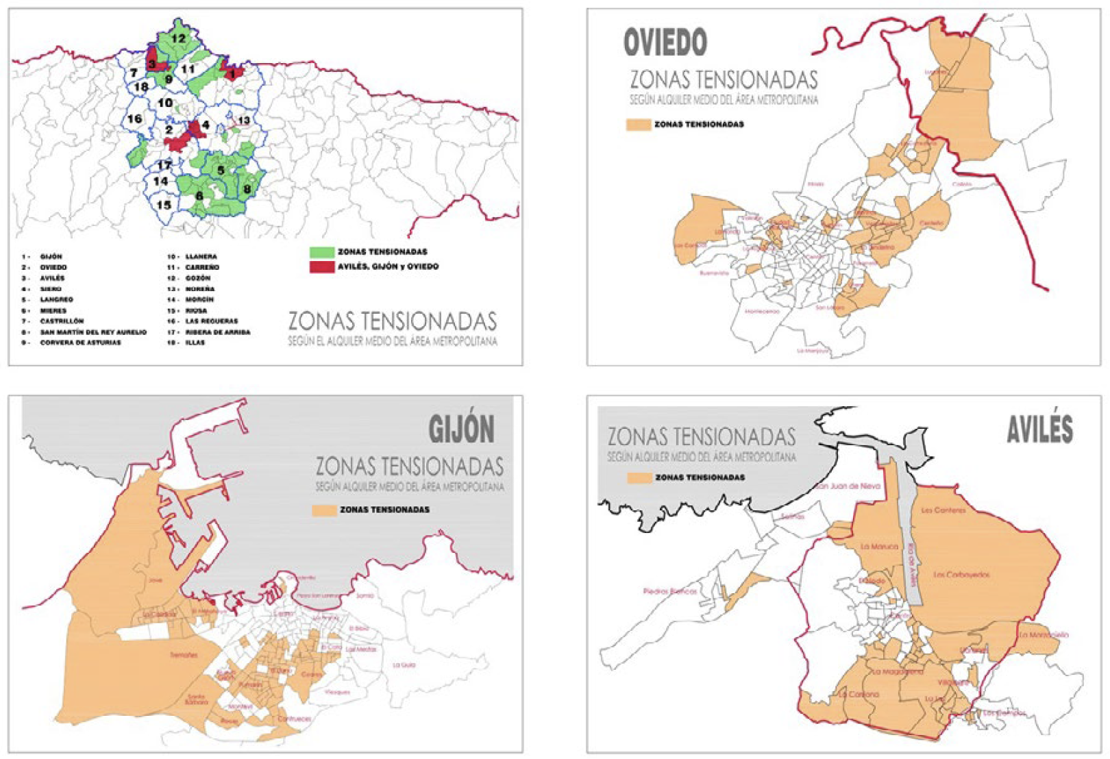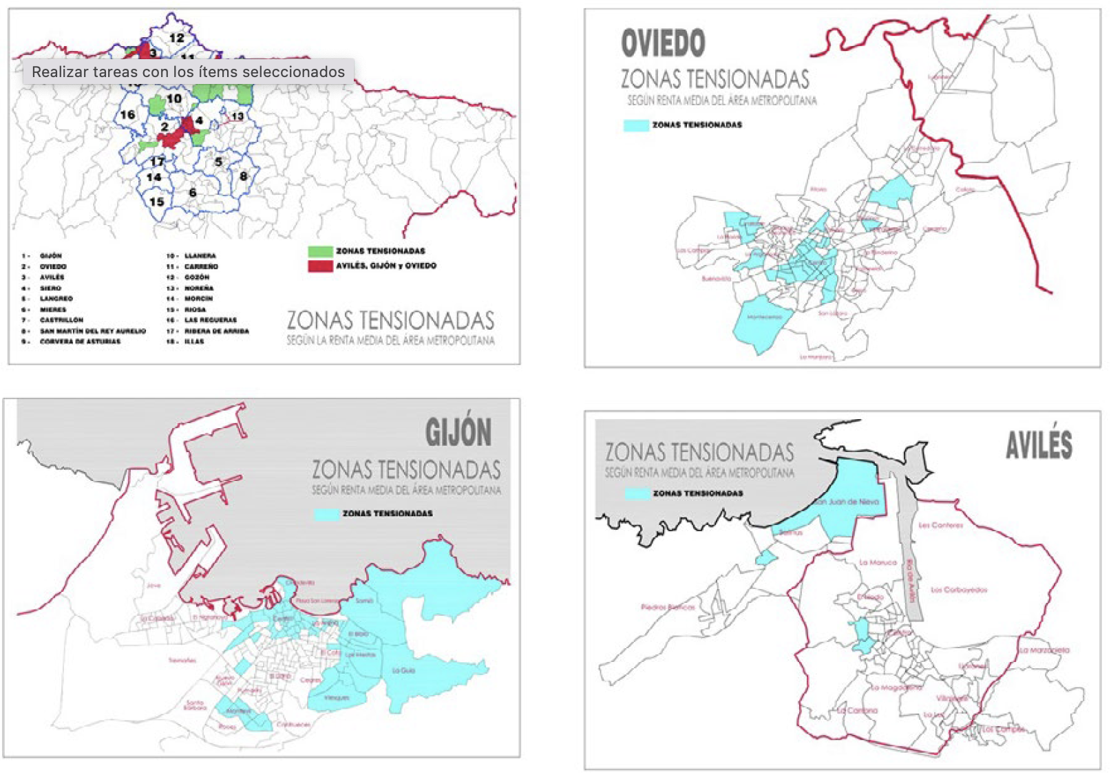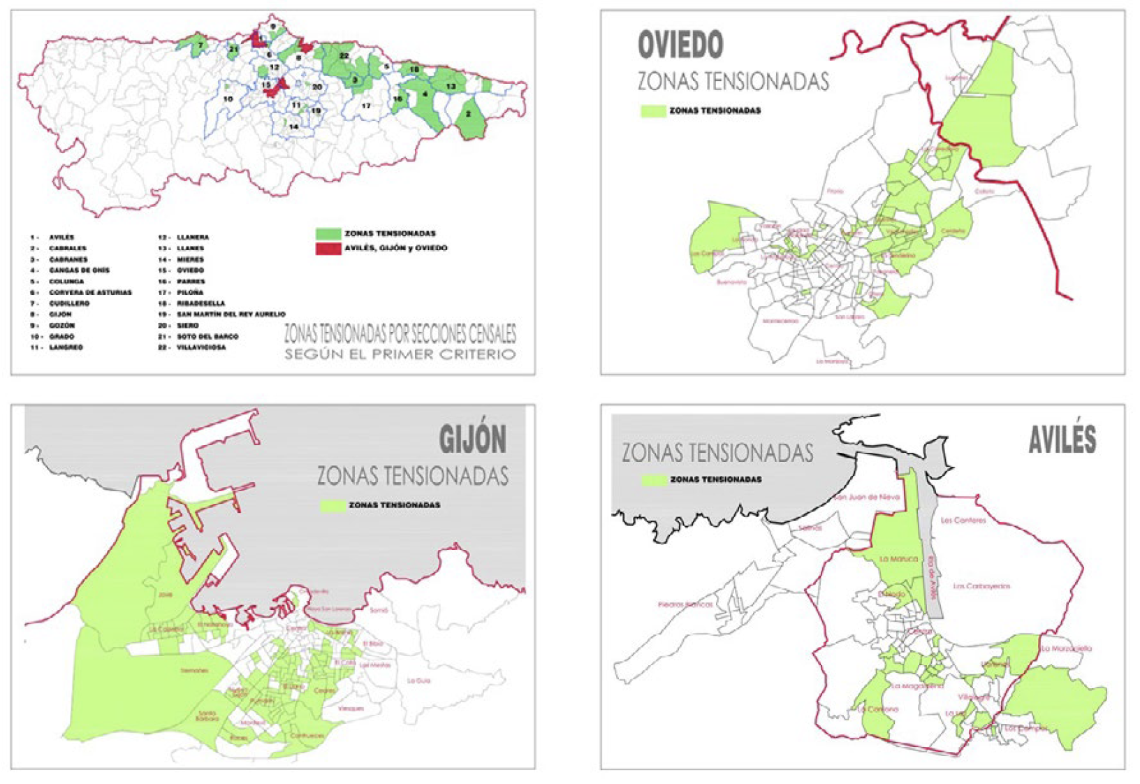 2Aplicar el nuevo concepto de “zonas tensionadas” en el Principado de Asturias. En especial, comprobar el impacto de las zonas tensionadas en el área central de Asturias.