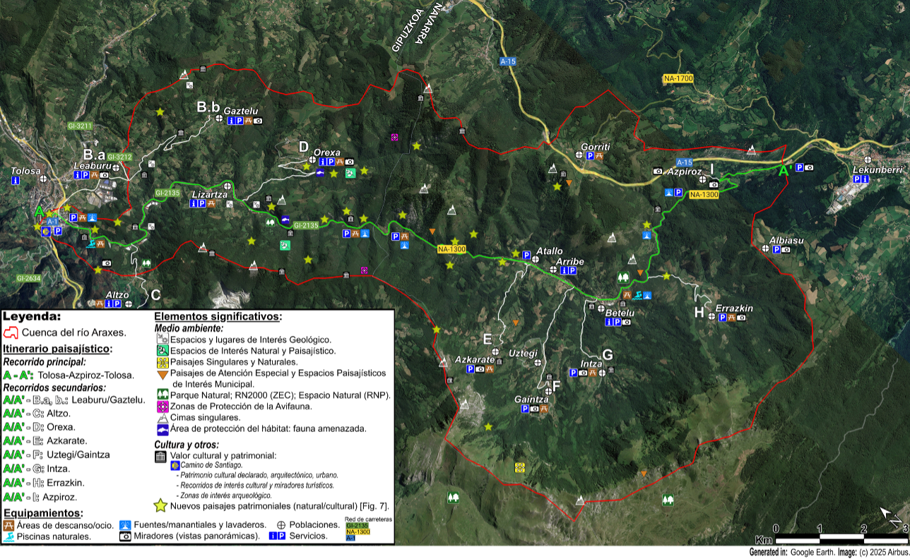 2.1.1. Valles de Araxes, Jazkugañe y Basabe 2.1.2. Sierra de Aralar 2.2.1. Valles del río Araxes, Jazkugañe y Basabe (DOT 035) 2.3.1. Valles de Araxes, Jazkugañe y Basabe 2.4.1. Puntos (4); espacios (5); recorridos (5) | ||