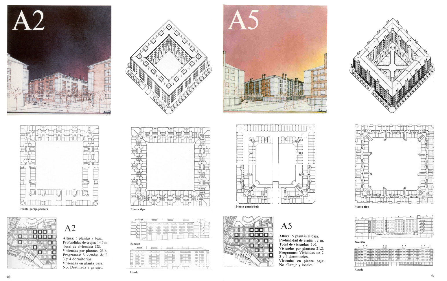 Algunas formas perimetrales remiten a formas tradicionales, como la plaza porticada de las viviendas sociales en Talavera de la Reina de Manuel e Ignacio Casas o las de Meseta de Orcasitas de Alfonso Valdés. No es extraño, apunta López de Lucio, que muchas respuestas al descontento social con los polígonos anteriores se basen en cierta recuperación analógica de formas añoradas, como la plaza de pueblo. Porque estamos ante una ausencia o tal vez una “presencia latente” de una forma urbana ibérica específica. En el caso de Andalucía, los nuevos desarrollos residenciales de iniciativa pública se equilibrarán entre un regionalismo crítico y la pervivencia de cierta racionalidad funcionalista pero siempre respondiendo en general desde la arquitectura (Mosquera & Pérez Cano & Pérez Escolano, 1985). Entre racionalismo y eclecticismo sitúa a la producción del ámbito madrileño una monografía de la Asociación Internacional de Arquitectos (UIA, 1983) pero con un denominador común, una preocupación específica por el tipo, ejemplificado en las lecciones importadas de Italia, con Moneo como referente cultural de un extenso grupo de profesionales, pero también en el hito local de la Casa de las Flores de Zuazo de 1931, presencia grabada en el inconsciente de cada arquitecto madrileño.