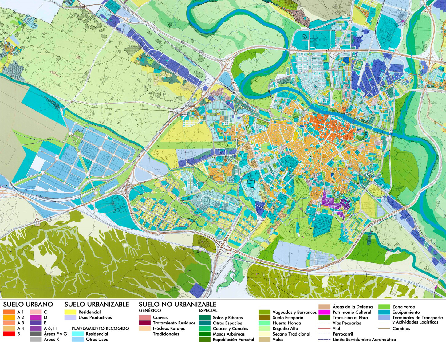10 El plan general de ordenación urbana vigente en Zaragoza se aprobó definitivamente el 13 de junio de 2001 (BOA nº 71 de 13/06/2001), con texto refundido aprobado el 6 de junio de 2008 (BOA 30/6/2008). Fue redactado de oficio por los Servicios Técnicos del Area de Urbanismo, con un equipo dirigido por los arquitectos municipales Manuel Pérez Corzán, como coordinador general, junto con los también arquitectos municipales Carmelo Bosque Palacín y Ramón Betrán Abadía.