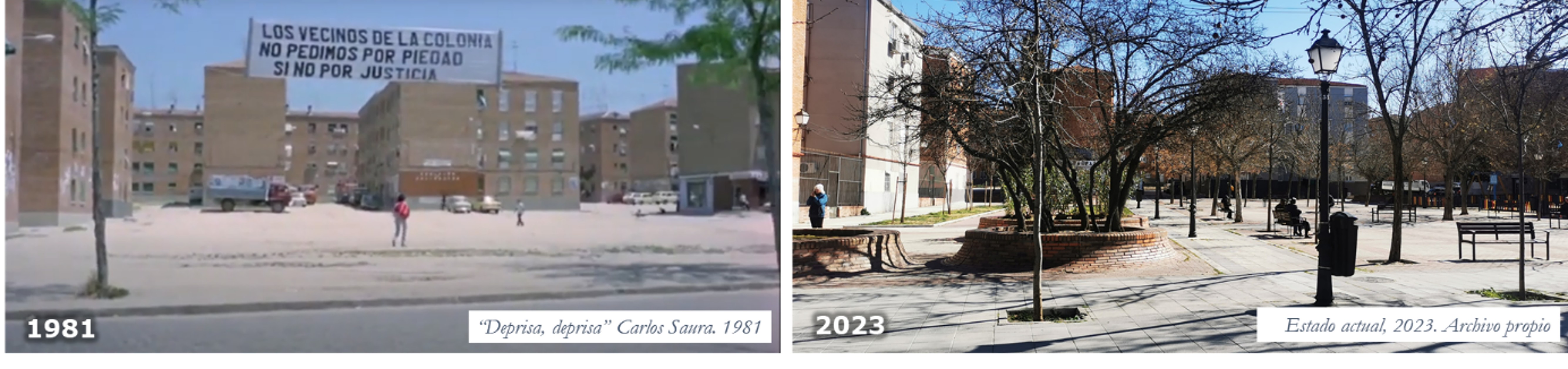 Fig. 3 Poblado Virgen de la Piedad, Villa de Vallecas. Años 80 (izquierda) y actualidad (derecha)