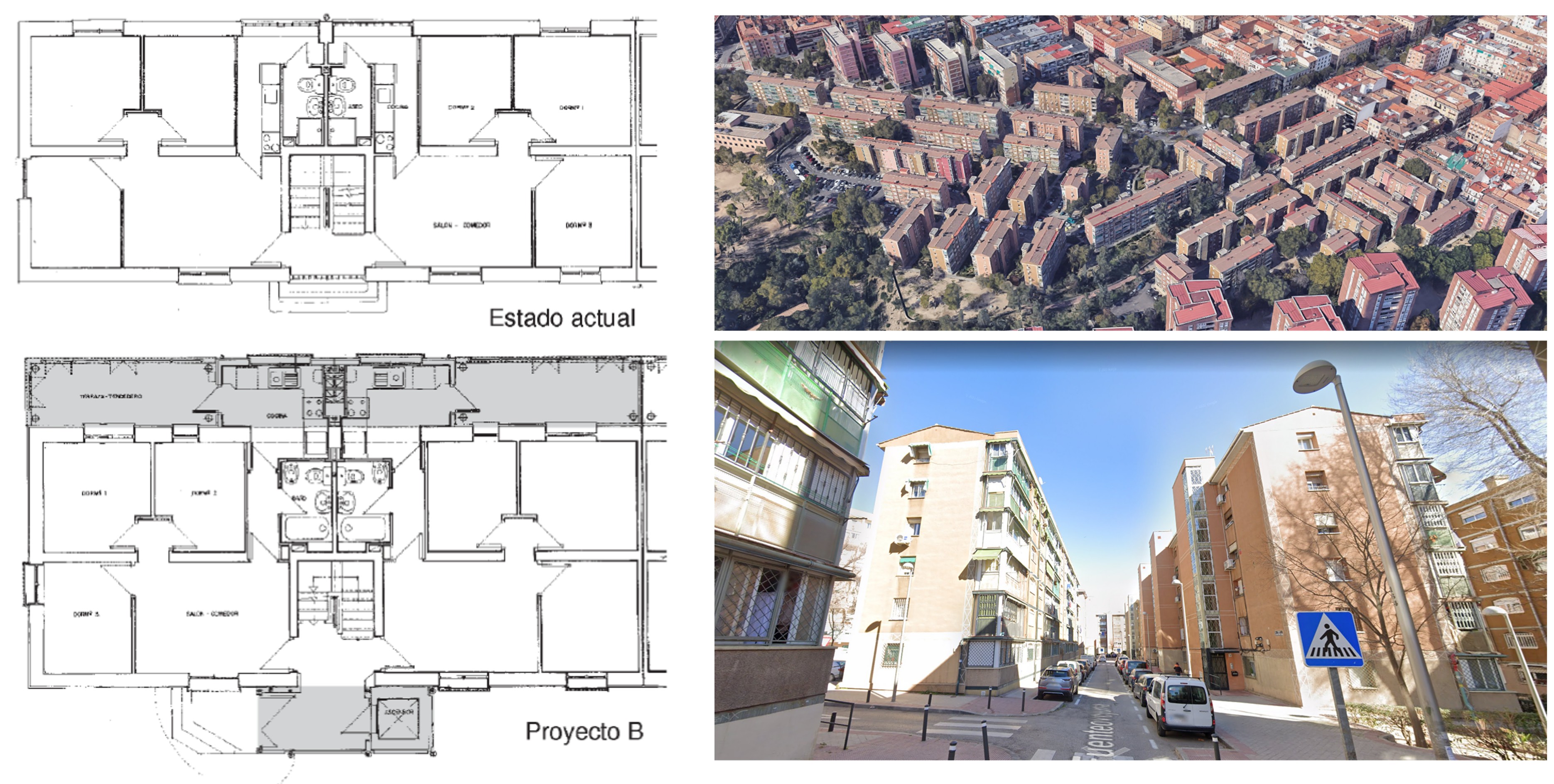 Con anterioridad a los programas de rehabilitación de áreas de los Planes de Vivienda estatales, se habían desarrollado experiencias piloto en áreas concretas financiadas por el gobierno central. En estos años también se produjo el traspaso del parque público de vivienda perteneciente al Estado a las recién creadas Comunidades Autónomas, que en ocasiones emprendieron actuaciones de reparaciones de gran calado y algunas operaciones pioneras de ampliación de las edificaciones existentes (Fig. 6).