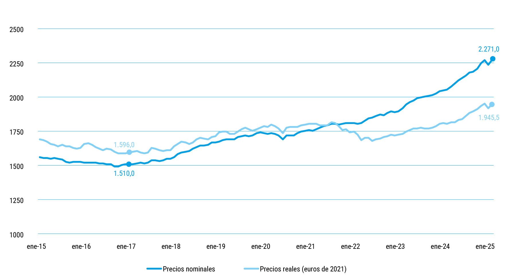 Fig. 5.Precio compraventa vivienda nacional promedio (€/m2)
