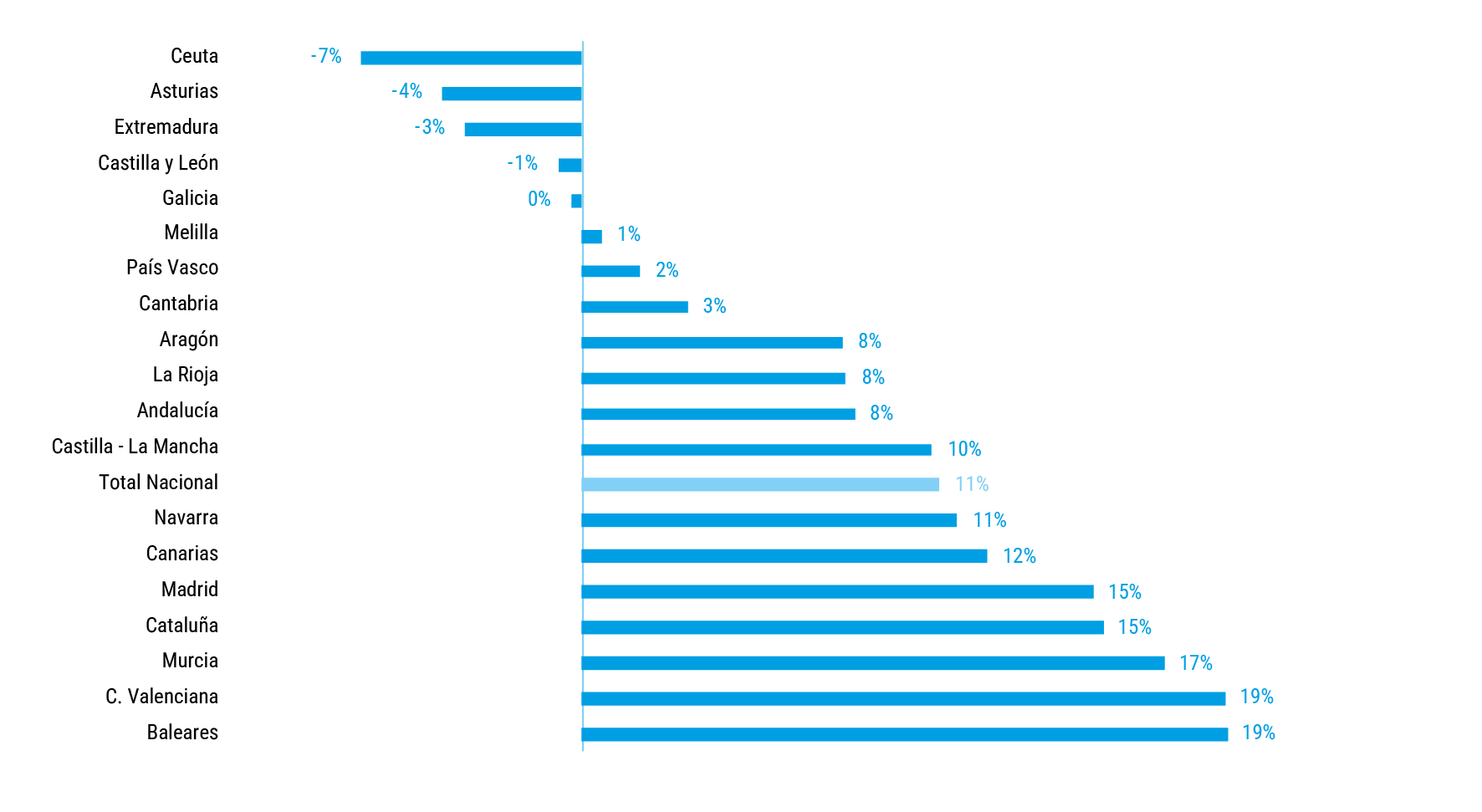 Fig. 6.Tasa de variación del precio de compraventa de la vivienda (2017-2024)