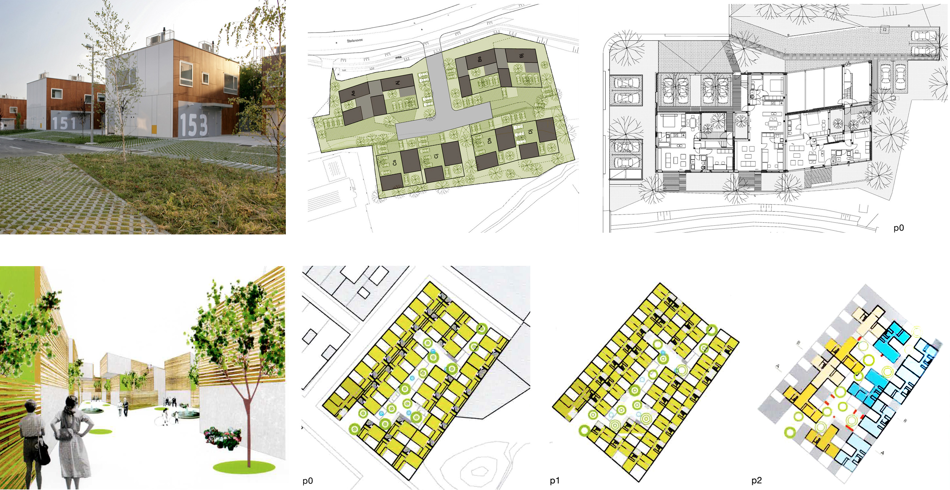 Al igual que la fórmula BAAD/LHRD, el habitat intermédiaire experimentó a comienzos del siglo XXI una recuperación notable, impulsada por la búsqueda global de modelos urbanos más sostenibles y respaldada por organismos públicos nacionales como el Plan Urbanisme Construction Architecture (PUCA) o la Fédération Nationale des Agences d’Urbanisme (FNAU), responsables de una extensa producción de estudios e informes oficiales (Belliot, 2006; Mialet, 2006; Urbitat, 2008; Allen, Bonetti y Werlen, 2010). Aunque varios de estos trabajos abordaron, explícitamente, la relación entre densidad y forma urbana —llegando incluso a clasificar sus variantes tipológicas asociadas y a diferenciar claramente entre tipos individuales y colectivos—, rara vez se detuvieron en un análisis arquitectónico específico que permitiese identificar propuestas de calidad singular, codificar y comparar sus mecanismos proyectuales y reflexionar sistemáticamente sobre sus aportaciones más relevantes a la teoría y la práctica del proyecto arquitectónico. En consecuencia, la innovación disciplinar del habitat intermédiaire contemporáneo ha quedado en buena medida difuminada entre una producción más genérica y previsible, fruto de las dinámicas propias del mercado.