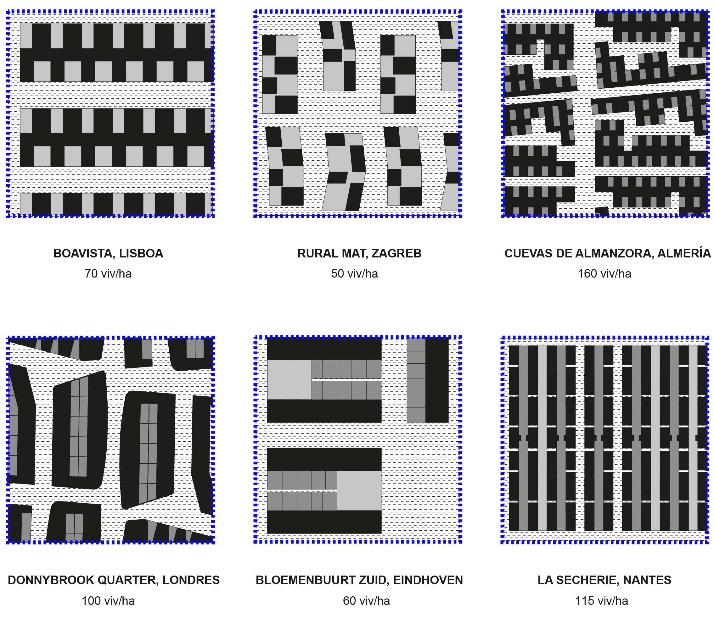Con todo, el potencial crítico de este concepto parece diluirse ante la ambigüedad semántica y el escaso rigor con que se suele manejar en la práctica profesional y el ámbito académico. Bajo una misma denominación se tienden a agrupar formas de vivienda muy diversas, desde sistemas de unidades unifamiliares adosadas o casas-patio, a agrupaciones colectivas de naturaleza dispar, algunas próximas y otras claramente ajenas a la lógica del bloque. A esta indefinición tipológica se suma una imprecisión no menor en torno a los rangos de densidad alcanzados, una cuestión que, si bien conviene abordar con cautela, demanda sin duda un esfuerzo analítico.