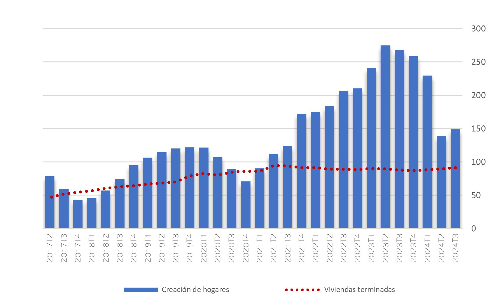 Fig. 7. Creación neta de hogares Vs Certificaciones de final de obra. Dato anual