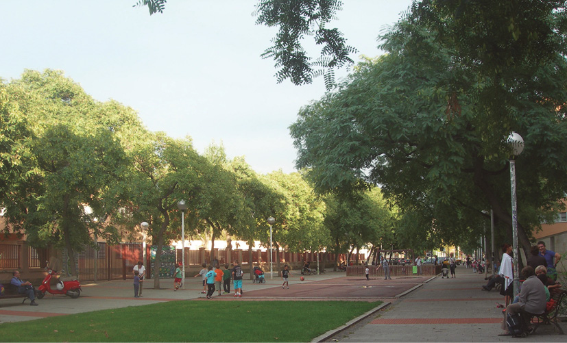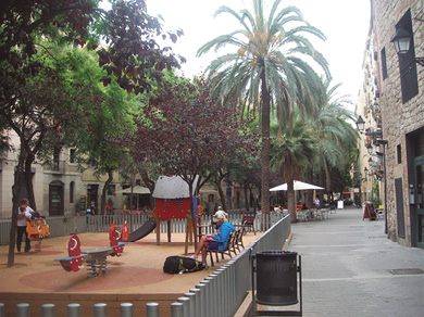 Fig.3/ Zona verde de proximidad en la ciudad histórica. Ciutat Vella. Barcelona.