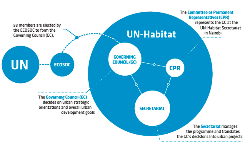 Antes de la reforma ONU-Hábitat fue estructurada en tres órganos principales: