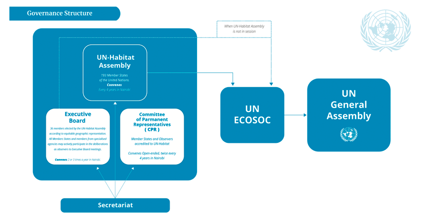La primera Asamblea General de la nueva gobernaza de ONU-Hábitat se convocó en Nairobi (Kenya), del 27 al 31 de mayo de 2019, con el tema central: