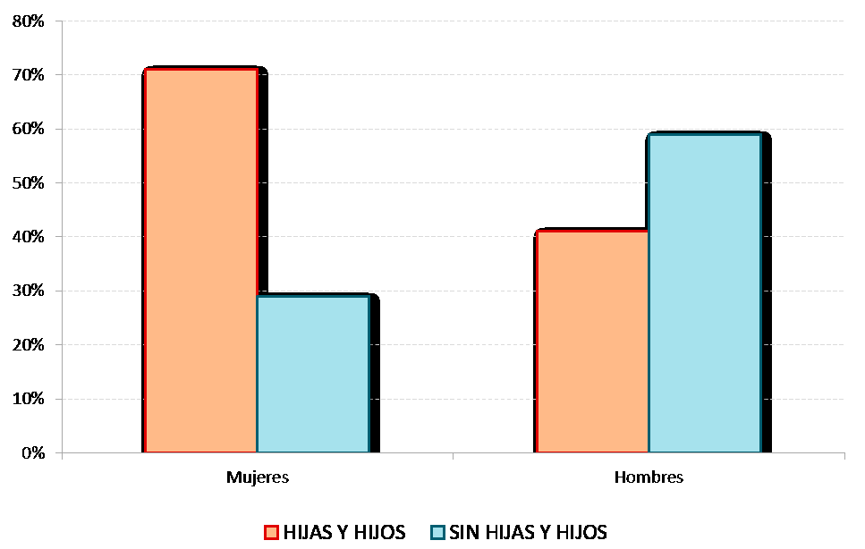 La razón principal seguramente tiene que ver con la mejor adaptabilidad del coche a las tareas del cuidado: es más rápido que otros medios de transporte, más flexible y facilita atender todas las actividades cada vez más diversas y complejas necesarias para vida diaria. Las mujeres que tienen hijos menores de 18 años hacen más del 70% (calculado sobre el 66% del total de viajes) de los viajes analizados, y los hombres en la misma situación hacen solo el 41% (calculado sobre el 34% del total de viajes).