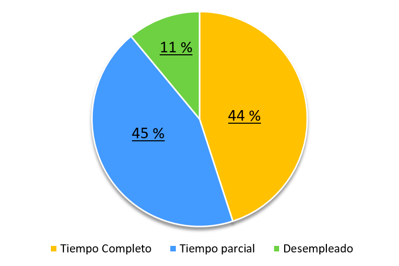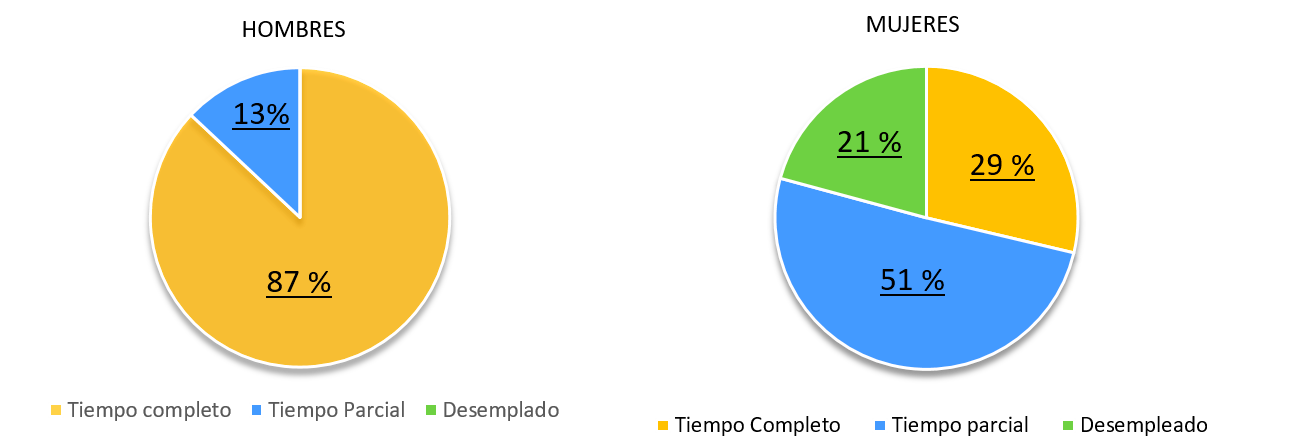 Los viajes realizados por personas que trabajan a tiempo parcial son equivalentes en número a los viajes de quienes trabajan a tiempo completo. La mayoría de las personas que trabajan a tiempo completo son hombres. A la inversa, y este es un tema muy importante para comprender las dimensiones de género de los viajes, son las mujeres las que desempeñan la inmensa mayoría de los empleos de tiempo parcial.