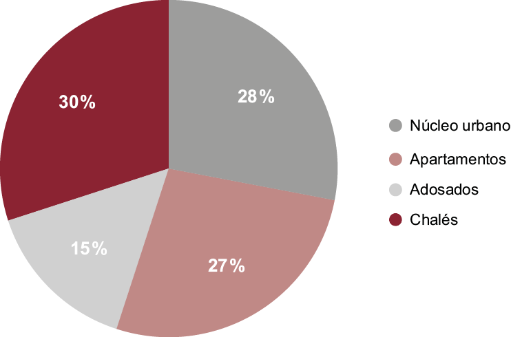 - Chalés: Viviendas unifamiliares con jardín y/o piscina particular.