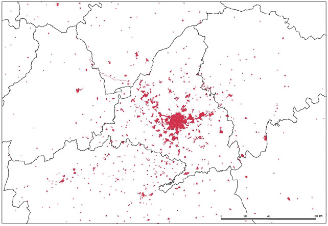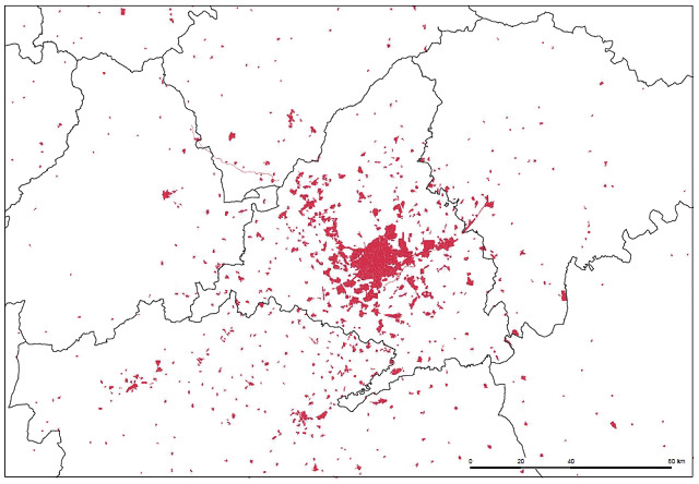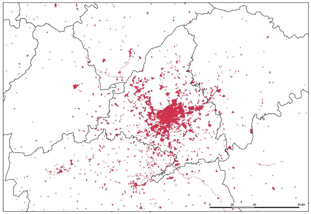 Por todo ello (y no existiendo definición legal, solo estadística o de estudios, de cuáles son los municipios que se integran en ella) se toma como definición de la Región Metropolitana de Madrid la definición del área urbana de Madrid del Atlas Estadístico de las Áreas Urbanas en España 2018 del Ministerio de Fomento según el cual son 52 municipios incluyendo la capital los que se incluyen en ella, superando en 2018 los 6 millones de habitantes, de los cuales más de 3,1 millones corresponden al municipio de Madrid (Ministerio de Transporte, Movilidad y Agenda Urbana, 2018). En algunos casos se aportan en esta investigación datos a escala regional o incluso municipal, cuando no existen datos de escala metropolitana. Como nota metodológica es necesario subrayar la dificultad de definición y/o limitación de un objeto tan cambiante, con una transformación tan intensa y rápida, como es la Región Metropolitana de Madrid.