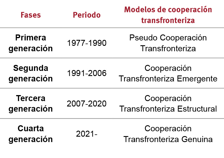 A continuación, iniciaremos un recorrido por cada una de las fases o generaciones de la cooperación transfronteriza institucional en esta frontera (Fig. 1).