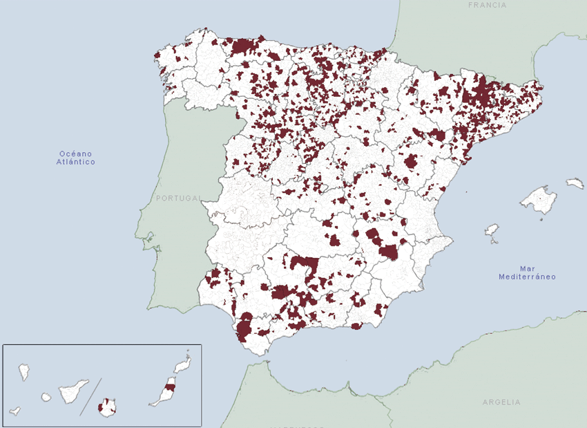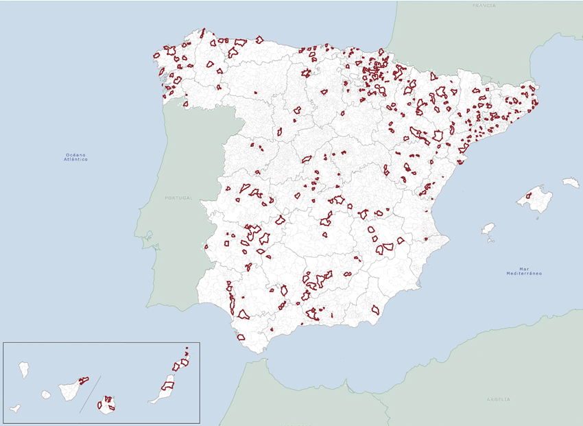 Según el Atlas Digital de las Áreas Urbanas del Ministerio de Fomento, de los más de ocho mil municipios que conforman el territorio español, casi 1.500 (1.414, prácticamente uno de cada seis) no tiene ningún tipo de planeamiento municipal aprobado, más de 3.000 (3.029, casi 4 de cada diez municipios) cuenta con Normas Subsidiarias como documento de planeamiento municipal y más de mil (1.211, uno de cada ocho municipios) solo tiene aprobada una Delimitación de Suelo. (ver Fig. 1).